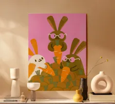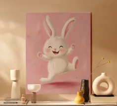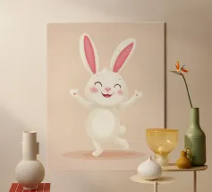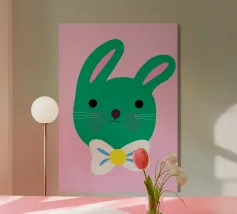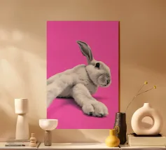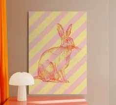 This cheeky poster with a cute illustrated black rabbit on a bright pink background provides maximum contrast between a sugary look and a clear message. The smiling bunny nonchalantly gives the middle finger - a tongue-in-cheek statement for anyone with a sense of humour, attitude and a weakness for ironic animal art. Perfect for offices, shared flats or creative spaces.