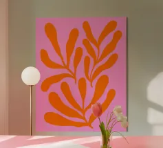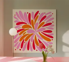 Elevate your space with a captivating modern artwork featuring abstract shapes in vivid red, pink, and violet hues. Add a touch of sophistication and vibrancy to your decor with this stunning piece. Perfect for art enthusiasts seeking contemporary elegance.