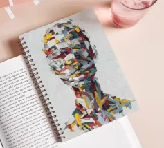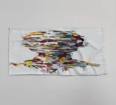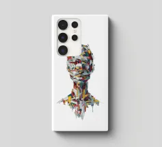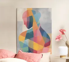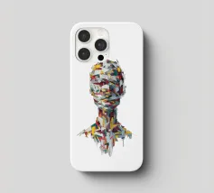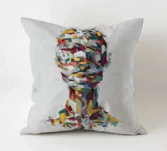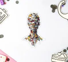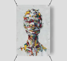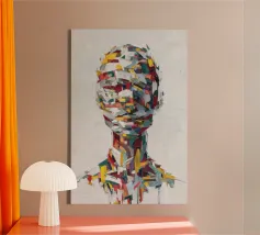 A striking abstract portrait composed of bold, palette-knife brushstrokes in vivid reds, yellows, teals, whites and deep blues. The fragmented strokes form the silhouette of a human head and shoulders, creating a sense of motion, texture and emotional depth. Set against a textured white background, the piece blends modern expressionism with sculptural geometry, offering a dynamic, contemporary statement artwork.
