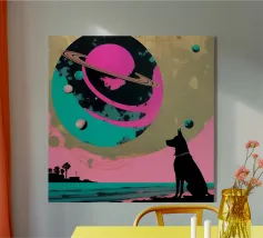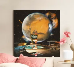 Scott Listfield's works tell the story of a lone astronaut who sets off on a quest and encounters pop culture icons, brand logos and science fiction allusions on his journey. The American artist studied at Dartmouth College and returned to the USA after a stay abroad, where he began to paint astronauts and sometimes dinosaurs. The artist regularly exhibits his work in galleries and museums around the world, and his designs have also been featured in Juxtapoz, Wired Magazine and The Boston Globe. In 2018, the first book about his work was published by Paragon Books.