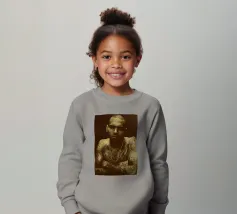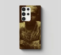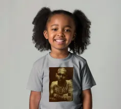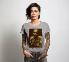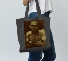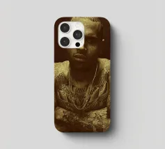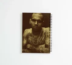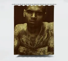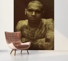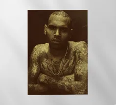 Unapologetically raw, Chris Brown gazes with fierce defiance—his body ink and bare soul rendered in warm sepia tones.