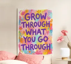 This inspiring artwork features the phrase "Grow Through What You Go Through" surrounded by lush green foliage. It serves as a powerful reminder that challenges and obstacles can be opportunities for growth and transformation. The vibrant colors and hand-drawn style create a visually appealing and uplifting piece that will add a touch of positivity to any space.