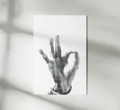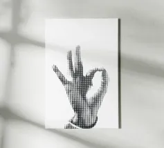 This picture shows a hand in an expressive pose, depicted as a half-tone image. The image focuses on the movement and shape of the hand, with the fingers spread dynamically. The halftone effect, where the image is made up of small dots, gives it a textured and deep dimension that is both artistic and technical.