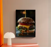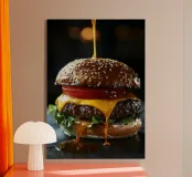 burger cheese sesame seed bun tomato lettuce dripping sauce beef patty melted cheese fast food comfort food grilled juicy classic burger delicious appetizing gourmet lettuce leaf sandwich hamburger meal