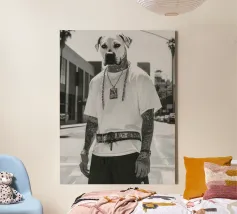 Absurd compositions featuring human dogs. Human dogs who, like us, live in Paris, Los Angeles or London and who, like us, are passionate about fashion, cars or nothing at all. Dogs that are disillusioned, amused or loved. Some are hippies, others have tattoos. In short, dogs who are just like us. Or are we like them? Dive into the artistic world of Dogland, an exclusive collection dedicated to all those who consider their dog to be a member of the family. Here, each dog poster is a work of art thought up with humour, tenderness or elegance. Whether you're a fan of bulldogs, dachshunds or corgis, you'll find the wall poster that will make your home bark with happiness. Add a canine touch to your walls with original illustrations, printed on quality paper, ready to sublimate your interior. Dogland is more than a shop: it's a declaration of love for dogs.