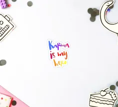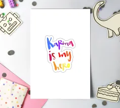 Von hand lettered: Karma is my hero