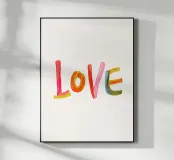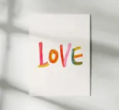 The word "Love" in colourful, cheerful brushstrokes.