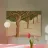 Abstract trees with stylized branches are depicted against a backdrop of muted earth tones. Strong vertical and diagonal lines give the impression of a sparse forest or woodland scene employing a simplified color palette.