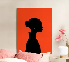 A contemporary minimalist portrait defined by strong contrast and a precise horizontal line that structures the composition. The black silhouette stands out against a vivid yellow background, creating a bold graphic balance between form and space. Clean contours and restrained details give the artwork a modern, confident presence, making it an impactful accent for design-focused interiors.