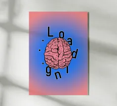 A brain is depicted being filled with coffee from a pot, accompanied by a loading bar below. The illustration humorously suggests the mind's need for coffee to function properly.