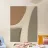 Soft, flowing shapes in earthy tones overlap to create an abstract design. The composition uses a palette of beige, brown, and gray, giving a calming and harmonious effect.
