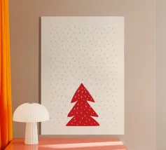 A minimalist Christmas tree with a festive character: fine red lines on a deep red background create a modern, elegant silhouette. This design is perfect for anyone who likes their Christmas decorations simple, stylish and artistic. It combines warmth and tranquillity - ideal for the living room, hallway or as a subtle seasonal statement on the wall.