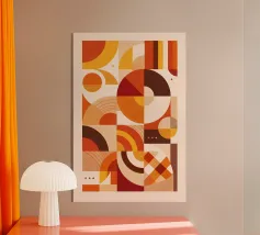 A modern abstract design combining bold geometric shapes with a warm, retro-inspired colour palette. Perfect for adding a touch of mid-century modern elegance to any living space or office.
