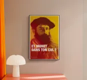 It’s Marx and Monet as you’ve never seen them before: paired with puns in a nod to the erotic. The masterminds behind these tongue-in-cheek prints are Fists et Lettres, a Parisian design duo with backgrounds in art direction and copywriting for advertising. No great thinker or creator is immune from their risqué wordplay en français, which they lay over classic portraits in bold type, adorning wall prints, stationery and accessories with a chuckle and a wink.