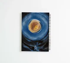 A golden orb emerges from swirling deep blues, like a cosmic seed of creation. Powerful and mysterious.