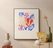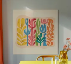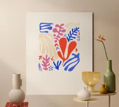 This colorful print draws inspiration from the playful, abstract forms reminiscent of Matisse’s distinctive style. Featuring vibrant, organic shapes that flow harmoniously across the canvas, it invites the viewer into a world of dynamic color and effortless elegance. Each element is designed to evoke a sense of fluidity and balance, with bold hues and smooth curves that evoke joy and creativity. The piece celebrates simplicity and spontaneity, blending color and shape into a bold statement of modern artistry. Perfect for those seeking to add energy and warmth to life.