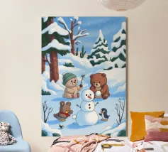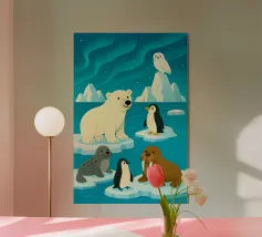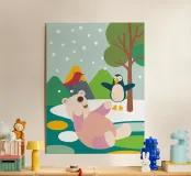 This illustration features a unique friendship between a bear and a penguin, full of warmth and joy.