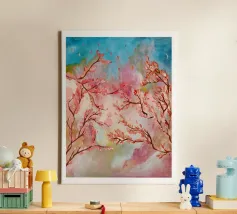 This painting represents the beauty of spring with the bird of flowers.