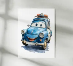 Für begeisterte Polizisten: Liebevoll illustrierte Polizei-Szenerie. Handgemalt mit Aquarellfarben und viel Herz.
