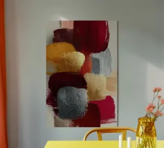 Painterly color blocks meet gentle contrasts in this expressive abstract artwork. Balanced and understated, it complements calm interiors beautifully.