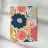 A large, stylized blue flower is set against a warm, neutral background, creating a simple, elegant, and modern piece of botanical art.