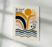 Modern statement design with a positive message: abstract shapes in warm colours and the inspiring message "She turned her can'ts into can's and her dreams into plans." make this motif the ideal companion for posters, notebooks, mugs and more. For anyone who wants to showcase their motivation in style.