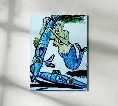 There is a KREATIV-WIR in the shop. WIR = Wolf-Dieter Pfennig+Carmen Janosch Wolf-Dieter Pfennig is known for his cheerful, ironic motifs. These spread good humour. His unmistakable drawings, graphics, paintings and posters can be found in the Museum Of Modern Art Toyama (Japan), the Lahti Museum (Finland), the Akademie der Künste Berlin and numerous private collections. Carmen Janosch, trained Asian painter / porcelain manufacturer Meißen. Then studied animation design/graphic design. The interplay of craft, AI mixed from Photoshop, Illustrator, Fresco. All digital designs were created individually and are her own work.