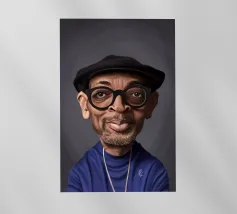 A humorous caricature illustration of the well-known American film director, producer, screenwriter, actor, and professor; Spike Lee. One of a series of caricatures achieved for the Celebrity Sunday series, where a famous person is rendered within a day. The idea is to show them as if in a passport photo to have consistency.