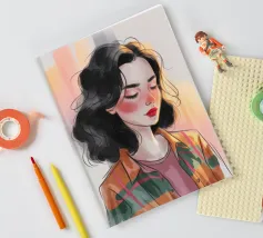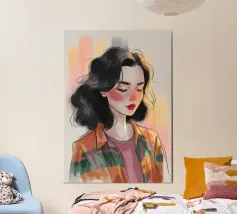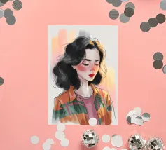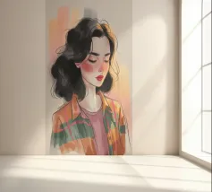 A relaxed depiction of a person in a plaid shirt, set against a creatively abstract background. The scene reflects a casual yet artistic essence.