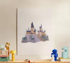 A majestic silhouette of a medieval castle rises from the edge of a rocky cliff, set against a glowing orange sun. The bold contrast between the dark architecture and the dreamy sunset sky evokes a sense of forgotten legends and ancient kingdoms. Minimalist textures and block shadows give the piece a modern vintage aesthetic, perfect for dreamers, fantasy lovers, and those drawn to mystery and grandeur.