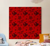 A pattern made with icons from the game Persona 5, featuring stars, the phanton thieves symbol and the iconic phrase from the warning card "Take your heart". This print pays homage to the game Persona 5 and its iconic items, a perfect gift for players of this wonderful game.