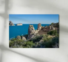 Summer view of the open Mediterranean and the Italian island of Capri.
