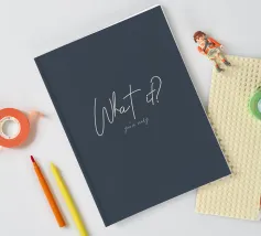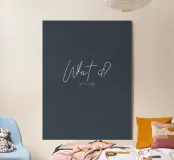 A minimalist typography poster featuring elegant handwritten lettering on a deep slate-blue background. The open-ended question “What If?” creates curiosity and momentum, while the subtle line beneath adds an intimate, personal tone. Short, modern, and quietly powerful, this piece is designed to spark possibility and self-belief. Ideal for creative studios, home offices, bedrooms, or contemporary interiors that embrace understated motivation.