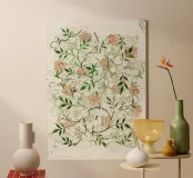 A delicate and timeless floral design by William Morris (1834–1896), founder of the Arts and Crafts Movement Features graceful winding vines and white jasmine blossoms nestled among soft foliage Embodies Morris’s devotion to hand-crafted beauty and nature-inspired design Originally created for textiles and wallpapers, showcasing elegant symmetry and natural charm Captures the tranquility of a flowering garden with subtle, earthy tones and rhythmic botanical forms Ideal for vintage-inspired interiors, traditional decor, or lovers of antique floral art