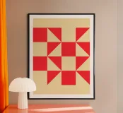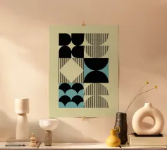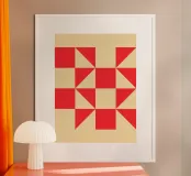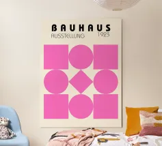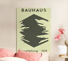 This graphically clear, abstract Bauhaus motif shows a rhythmic triangle and square pattern in strong red on a warm cream background. The strictly geometric arrangement creates an exciting balance of dynamism and order and is reminiscent of classic Bauhaus and mid-century design principles. Through the deliberate use of contrast and repetition, the pattern appears modern, timeless and architectural at the same time. The reduced colour palette lends the design calm and strength without losing expression. Ideal as a wall mural for living rooms, design posters, modern wall art.