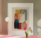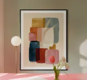 Add a splash of modern elegance to your living space with the 'Abstract Color Stack' poster. This artwork features a harmonious blend of soft, muted colours that evoke a sense of calm and creativity, perfect for any contemporary decor.