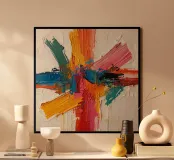 Abstract Painting of Intersecting Colored Brushstrokes poster
