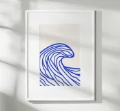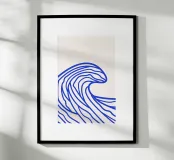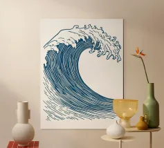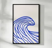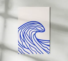 Enhance your space with this stylish Abstract Wave poster, perfect for a contemporary living room or office. The striking design featuring bold blue wave lines on a neutral background brings a sense of tranquility and modern flair to any indoor environment.