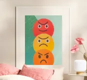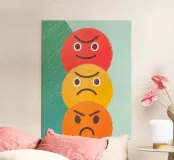 Cheerful illustration featuring various angry face expressions with unique designs, radiating a spirit of honesty and courage in expressing emotions.