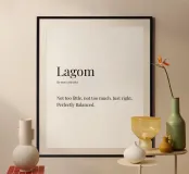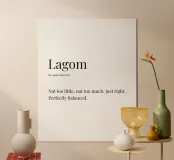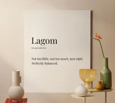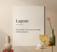 Capture the essence of balance with our 'Lagom' wooden framed art print. This stylish piece features a minimalist design that fits perfectly in any contemporary setting, serving as an inspiring reminder in your living room, office, or bedroom. Ideal for those who appreciate harmony in their decor, this art print makes an excellent gift for housewarmings or special occasions.