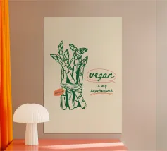 A charming illustration of a fresh bundle of asparagus, tied simply and drawn in soft, earthy tones. Perfect for kitchens, dining rooms, or farmhouse-style spaces — blending rustic warmth with clean, modern design.