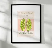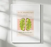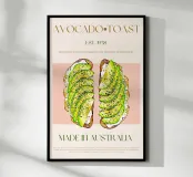 Set on a neutral, cream background, this elegant illustration of the famous breakfast dish avocado toast adds sophistication to any kitchen, cafe or dining area. This minimalist yet informative design will spark conversation in any setting, adding a refined touch to your environment.