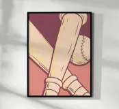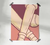 This detailed illustration of classic sports equipment features authentic wood grain and fine carved details.