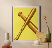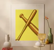 This detailed illustration of classic sports equipment features authentic wood grain and fine carved details.