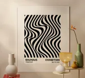 Dieses hypnotische Bauhaus-Design kombiniert schwarz-weiße Wellenlinien mit einer faszinierenden Dynamik und Tiefe. Perfekt für Liebhaber von minimalistischen und modernen Kunstwerken, bringt dieses Motiv zeitlose Eleganz in Ihr Zuhause. Ideal als Wandbild, auf Tassen, Handyhüllen oder anderen Produkten, die Stil und Klasse ausstrahlen. Das Design inspiriert durch die Bauhaus-Bewegung ist sowohl ein Blickfang als auch ein Symbol für künstlerische Freiheit.