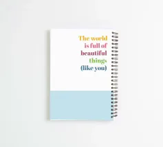 Elevate your home aesthetic with this minimalist wooden framed art print, featuring the uplifting message 'The world is full of beautiful things (like you)'. Perfect for enhancing any room, this print adds a touch of positivity and style to your decor.
