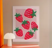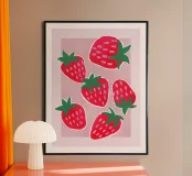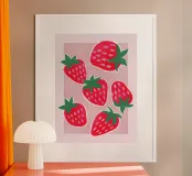 This vibrant strawberry art print is a sweet and cheerful ode to sunny days and fresh-picked fun. Featuring hand-drawn strawberries in bold red, pink, and green against a soft lilac background, it brings a playful, modern twist to classic fruit motifs. Perfect for kitchens, kids’ rooms, or anywhere in need of a splash of fruity joy. Inspired by retro fruit packaging and naïve art, this design adds a fresh pop of color and nostalgic whimsy to your everyday surroundings. By showmemars