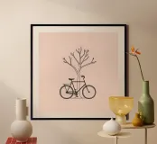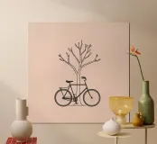 Bicycle leaning against a bare tree on a muted background poster with wooden frame