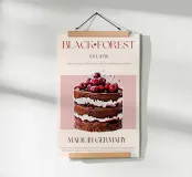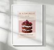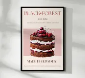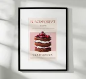 Set on a neutral, cream background, this elegant illustration of the famous black forest gateau adds sophistication to any kitchen, cafe or dining area. This minimalist yet informative design will spark conversation in any setting, adding a refined touch to your environment.