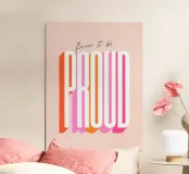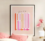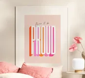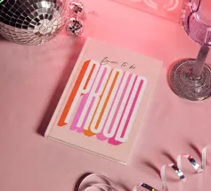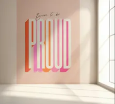 A bold and feminine statement print celebrating self-belief and empowerment. This confident and minimal typographic artwork features "Born to be" in small, in an elegant script, and the word “PROUD" in a large striking extra-condensed retro sans-serif font. Set in a bright palette of pink, orange, and red on soft blush, it’s a daily reminder for girls and women to stand tall, embrace their journey, and own their power. A perfect way to add positivity and strength to any space.